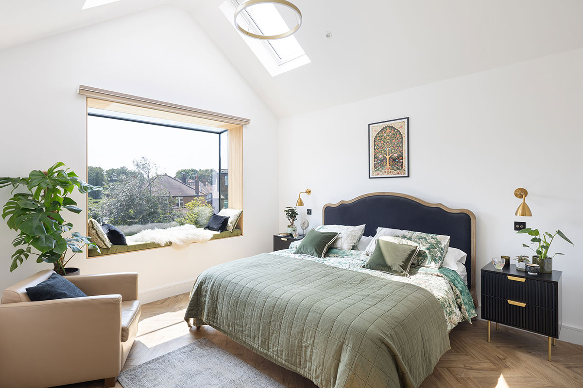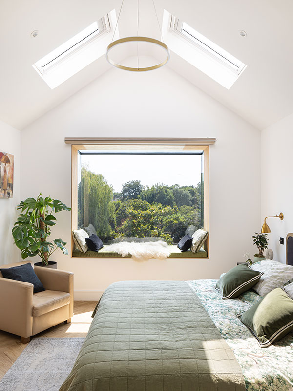 We were commissioned to bring a contemporary touch to this charming 1930s family home in Ealing. Central to the project is a spacious new kitchen, dining, and living area created as part of a generous rear and side extension. The fully refurbished entrance hall retains key original features, blending classic character with modern functionality to create a welcoming, open space adorned with artworks inspired by the family's extensive travels. The newly designed master suite boasts an open, pitched ceiling and a striking oriel window seat, offering serene garden views and a sense of retreat.